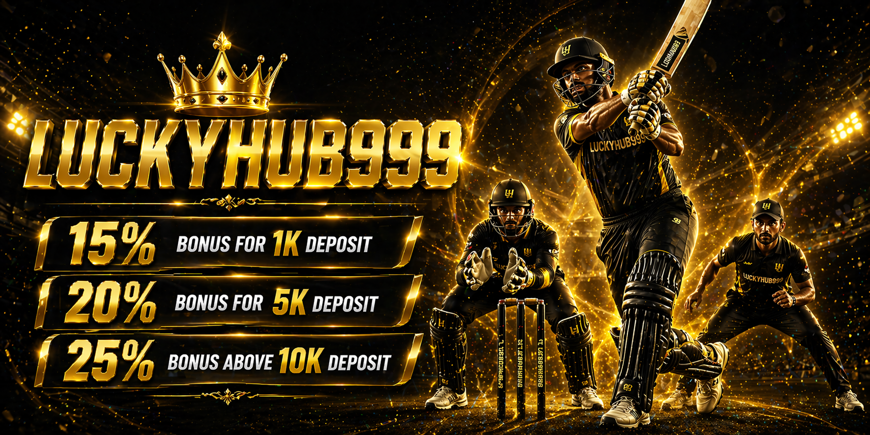 Welcome to LUCKHUB999, India's premier destination for online sports betting and live casino games. We offer a secure platform for betting on Cricket, Football, Tennis and more.